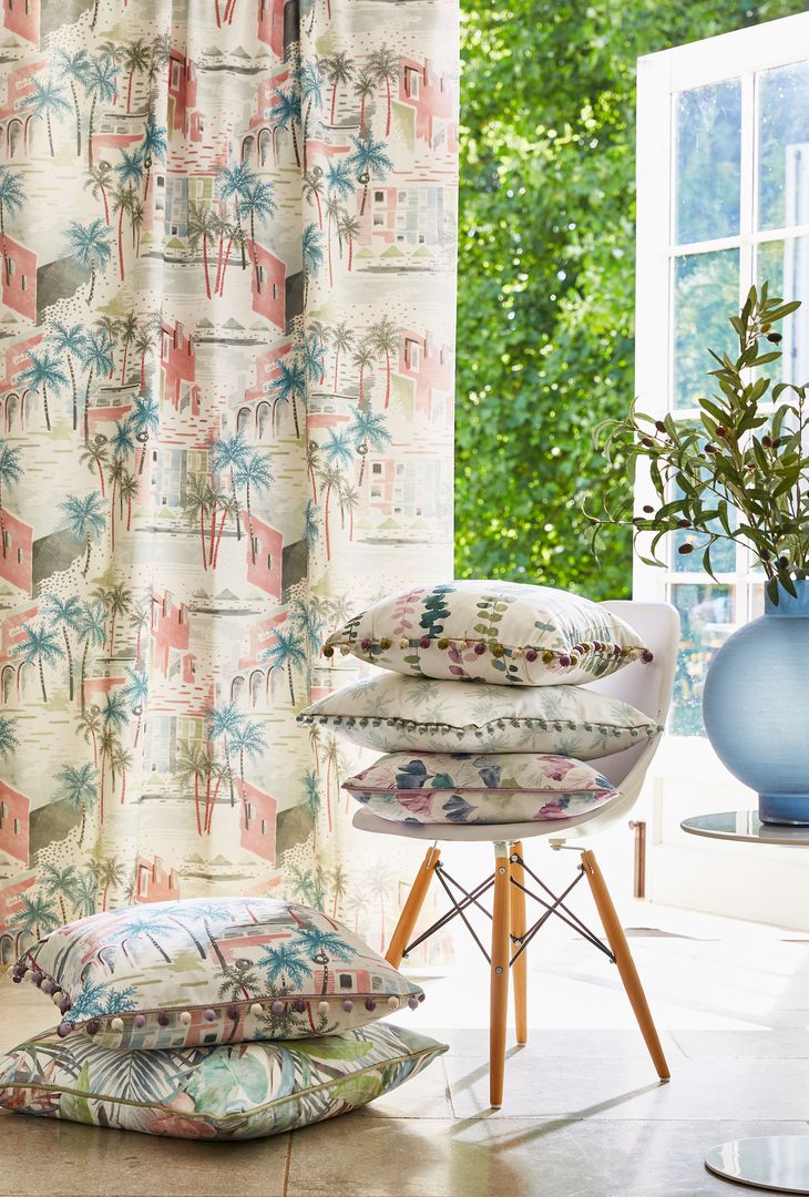 Generell gilt: Zu viele verschiedene Muster tun dem Raum nicht gut. Große, sehr schlichte Flächen können hingegen schnell eintönig wirken. D.h. die Mischung macht´s. Besonders hübsch ist immer ein „roter Faden“ an Farben, Mustern und Designs, der sich durch den Raum zieht.