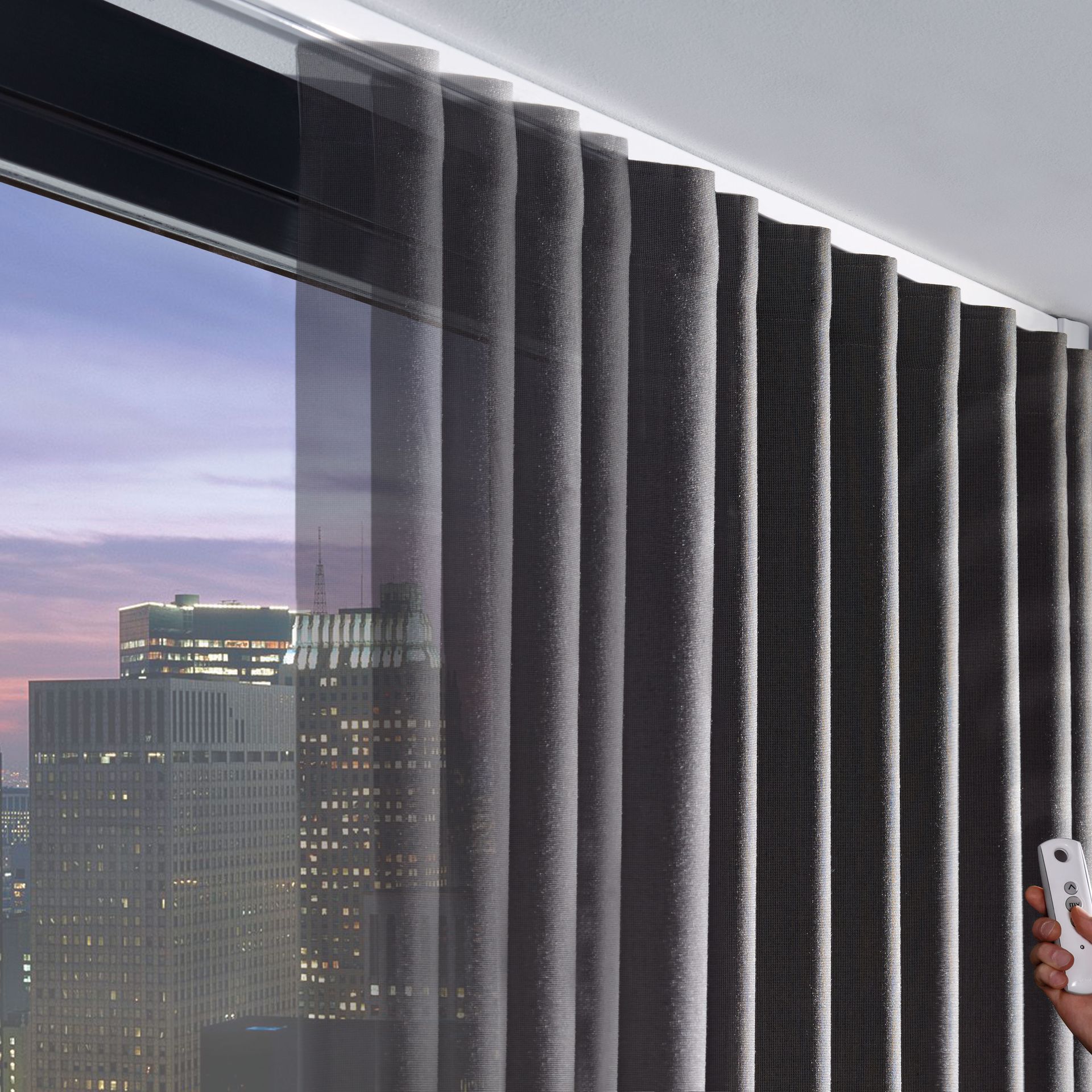 Sie haben eine besonders große und schwere Vorhanganlage in Planung? Dann empfiehlt sich die Variante per Knopfdruck. Auch bekannt als elektrische Vorhänge, sind motorisierte Versionen von Rundstangengarnituren bei schweren Stoffen und großen Vorhanganlagen immer mehr im Vormarsch. Per Funkfernbedienung lassen sich sehr einfach bedienen.